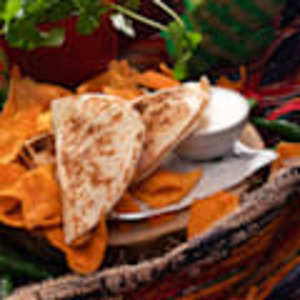tortilla pszenna z salsą pico de gallo, guacamole, papryczką jalapeno, kolendrą, kukurydzą, serem, frytkami meksykańskimi, marynowaną cebulą i mixem sałat z sosem winegret